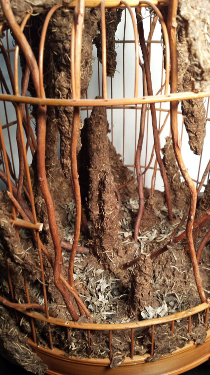 Wooden Cage, Mouse Bones, Branches, Paper Pulp, and Spanish Moss